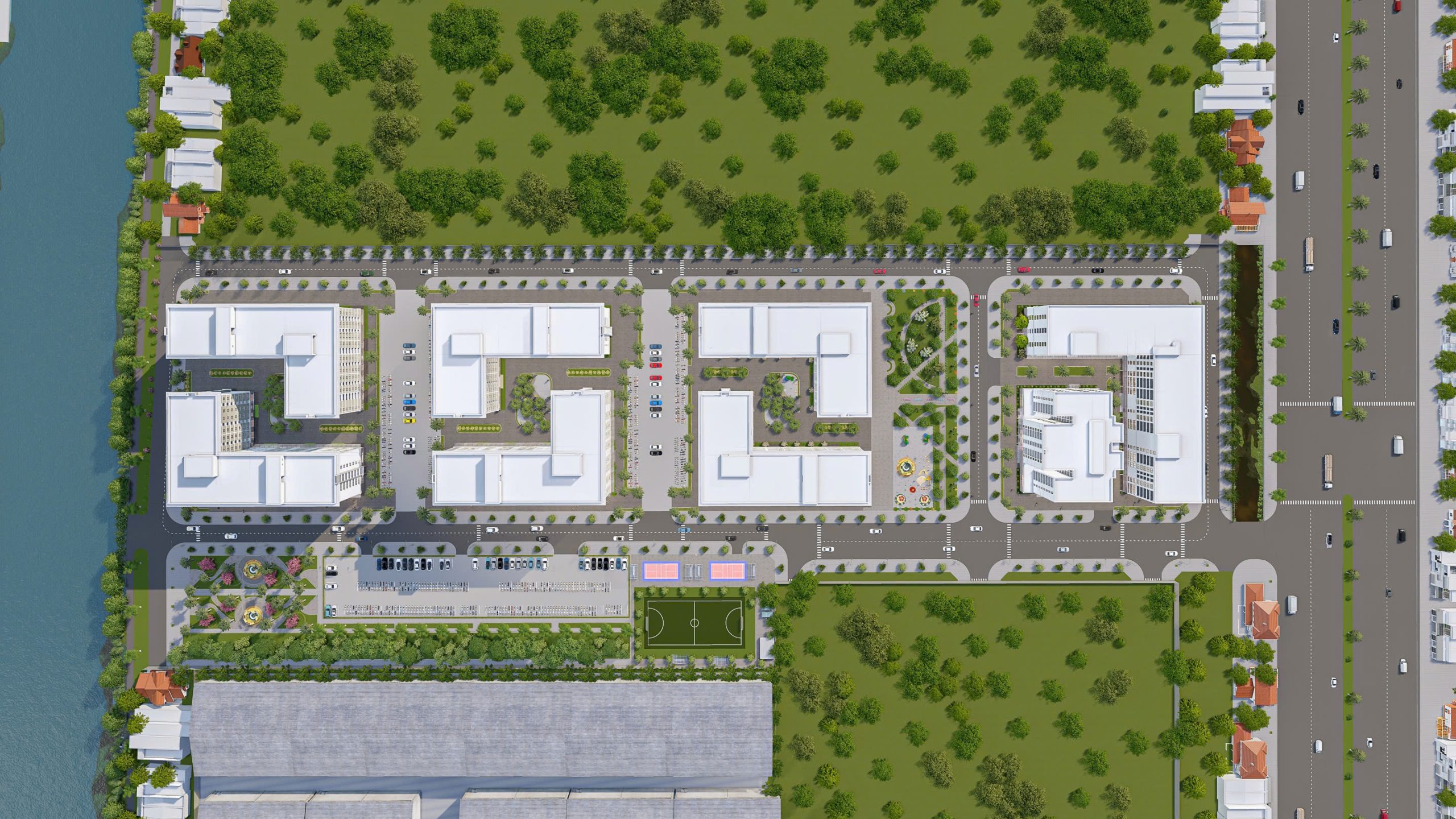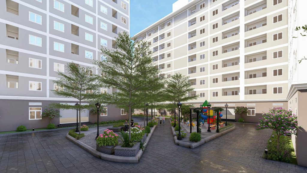 - Bãi đỗ xe, khu vui chơi, cây xanh thể thao, nhà sinh hoạt cộng đồng