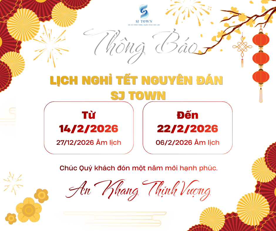 SJ Town xin trân trọng thông báo lịch nghỉ Tết Nguyên Đán 2026 như sau: