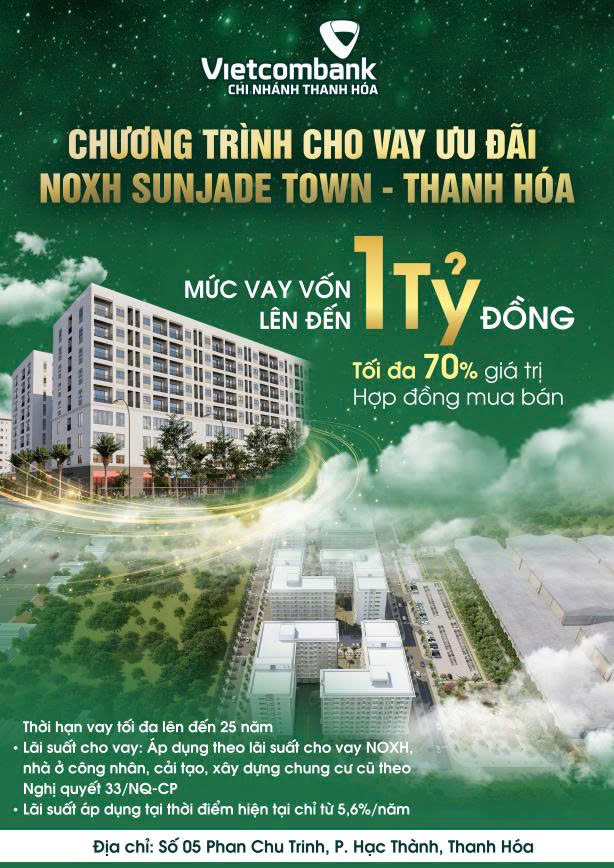 Nhằm tạo điều kiện thuận lợi cho khách hàng tiếp cận nguồn vốn vay ưu đãi khi mua nhà ở xã hội, Công ty TNHH Giầy Sun Jade Việt Nam đã chính thức ký kết Hợp đồng hợp tác kinh doanh với Ngân hàng TMCP Ngoại thương Việt Nam (Vietcombank – VCB) về việc tài trợ vay vốn cho khách hàng mua nhà ở xã hội tại dự án SJ Town.